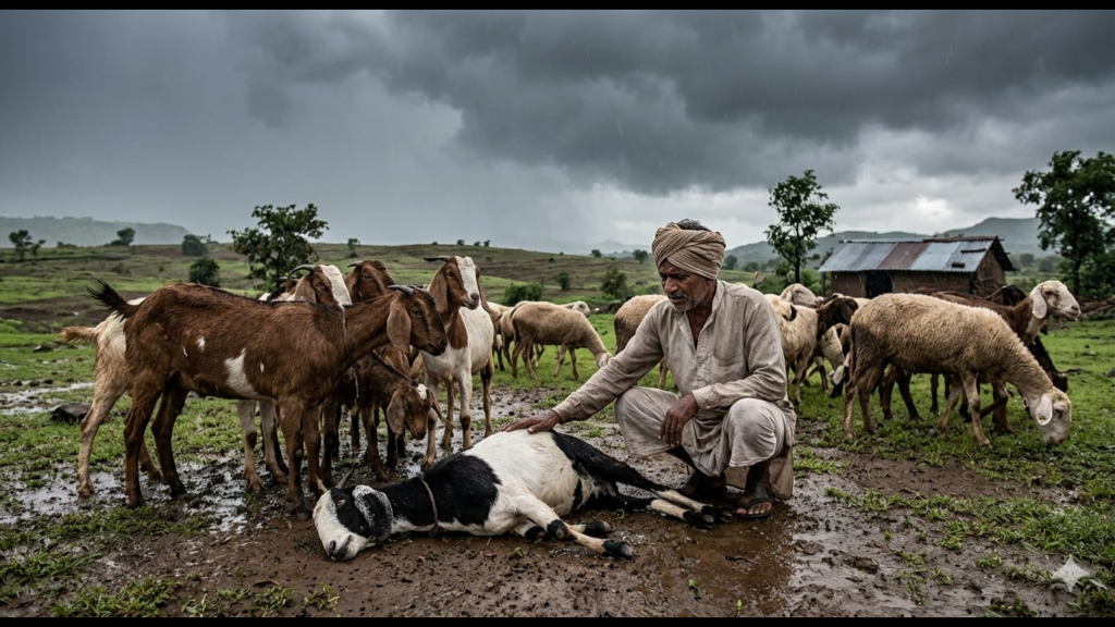 ⚡ खेड बुद्रुकमध्ये विजेच्या कडकडाटात शेळीचा मृत्यू
